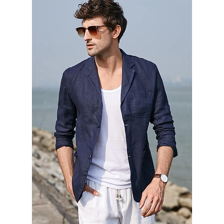 Áo vest Blazer Linen nam dáng lửng, thời trang phong cách trẻ trung