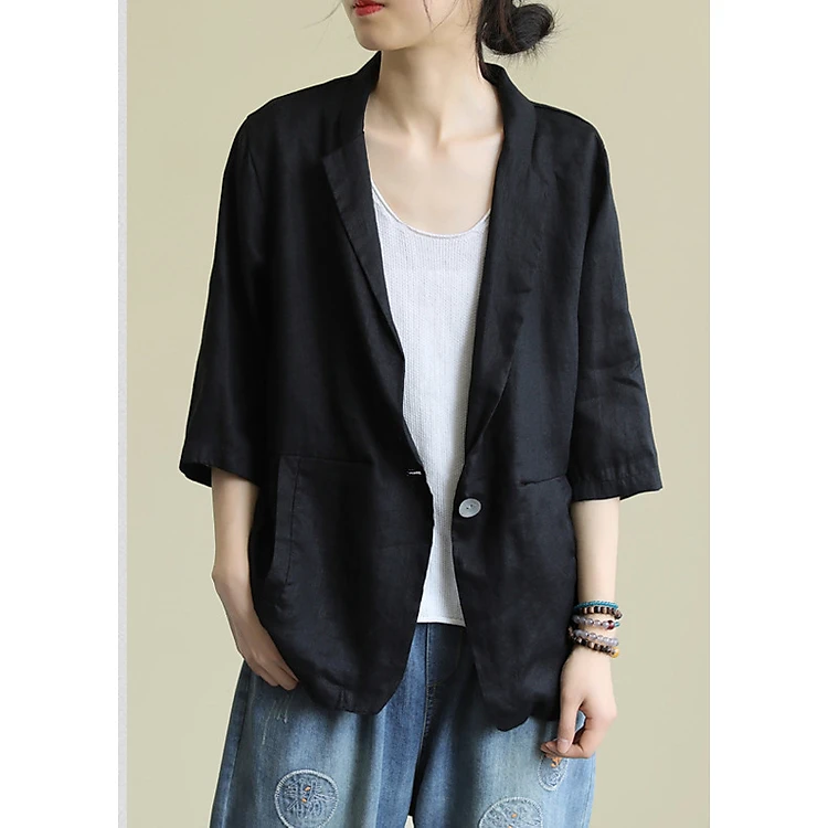 Áo vest Blazer Linen nữ tay lỡ 1 lớp, thiết kế 1 khuy, chất vải linen mềm mại, thời trang phong cách Nhật Bản