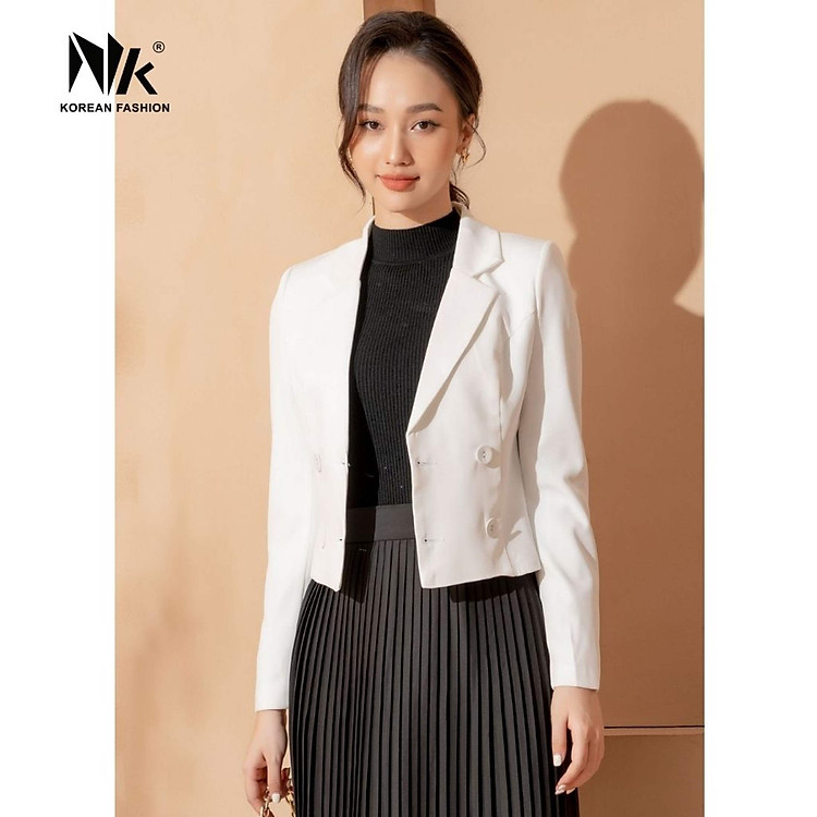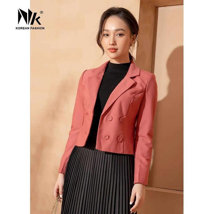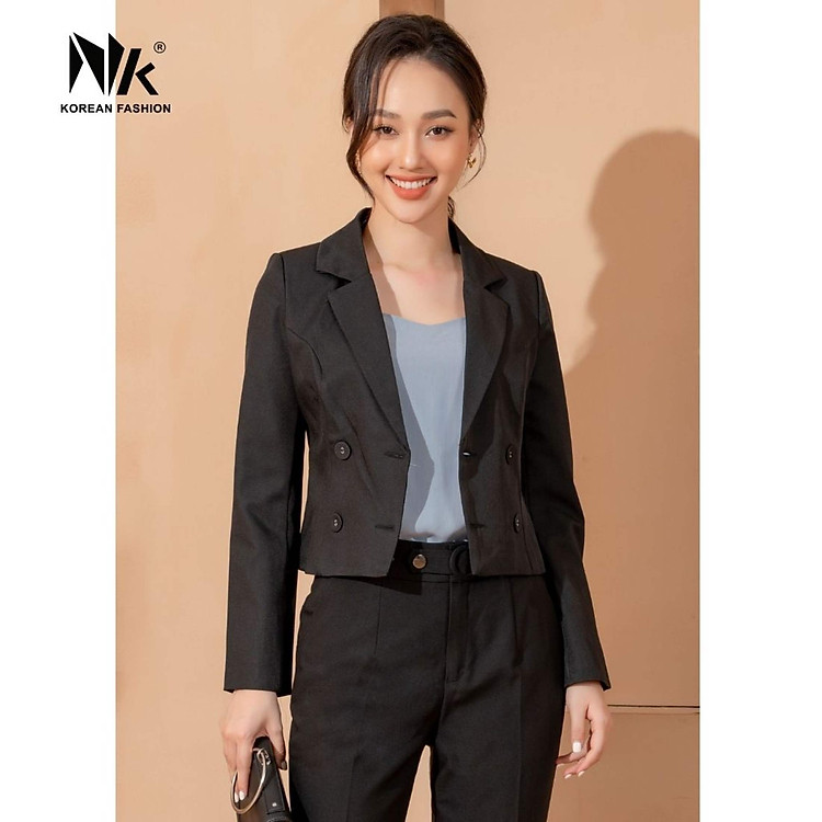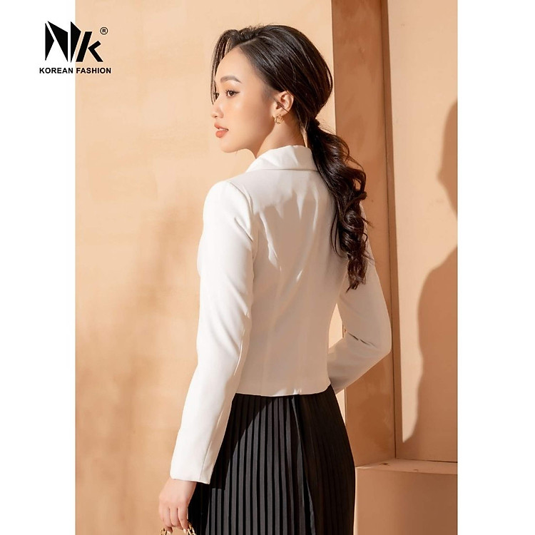 Áo Vest Công Sở Nữ NK Fashion Thiết Kế Dáng Lửng Dài Tay Kèm Cúc Bọc, Chất Liệu Nhập Hàn Cao Cấp NKFAK2109003