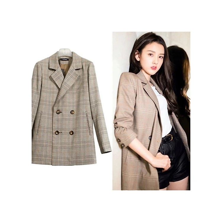 Áo Vest Nữ Dáng Dài, Kẻ Sọc Caro Kiểu Dáng Hàn Quốc, Hàng Quảng Châu
