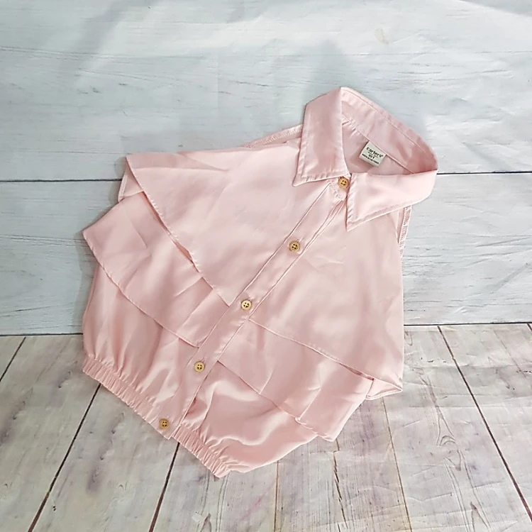 Aó sơ mi bé gái thiết kế bèo trước ngực, bo phần dưới, màu ngọt