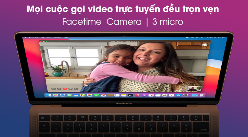Bộ xử lý tín hiệu hình ảnh trong chip M1 giúp bạn trông đẹp nhất cho mọi cuộc gọi FaceTime và hội nghị video. Laptop có đến 3 micrô tích hợp đảm bảo chất lượng đàm thoại tốt, ít tạp âm.