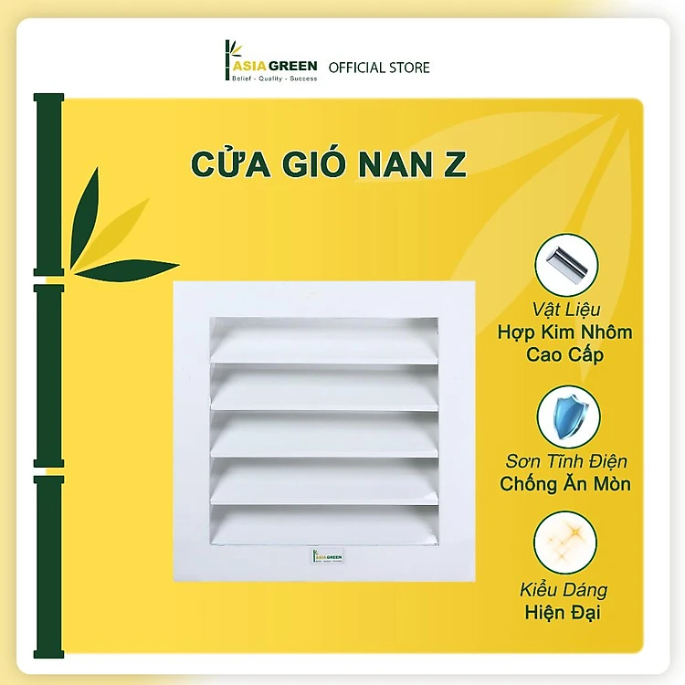 Asia Green - Cửa Gió Nan Z Kèm Lưới Chắn Côn Trùng, Ngăn Nước Mưa, Hợp Kim Nhôm Cao Cấp Hàng chính hãng (Bao gồm VAT)