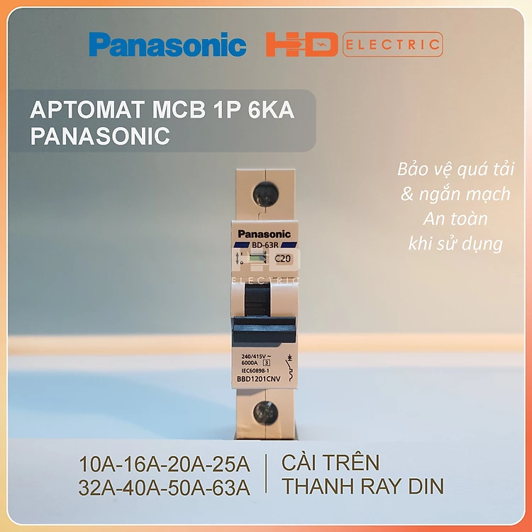 Át tép Aptomat MCB 1P 2P Panasonic 10A 16A 20A 25A 32A 40A 50A 63A 6kA