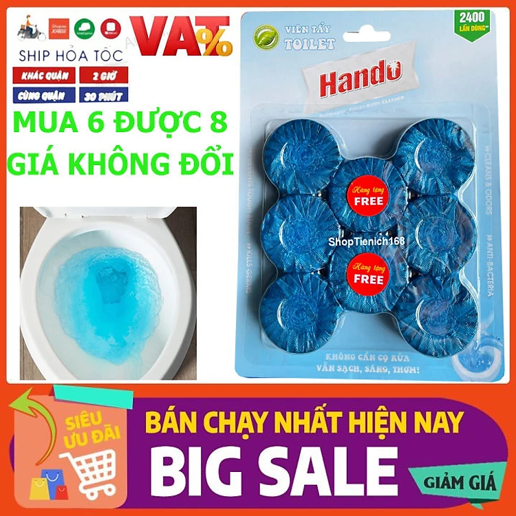 ] [MUA 6 ĐƯỢC 8 GIÁ KHÔNG ĐỔI] Vỉ 6+2 viên tẩy tự động làm sạch và làm thơm bồn cầu Hando