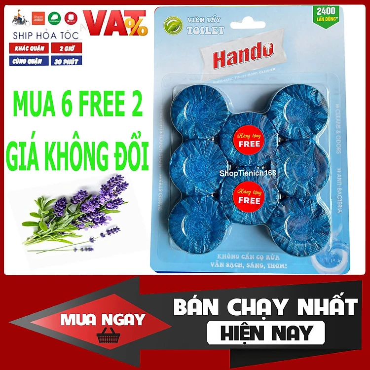 [MUA 6 ĐƯỢC 8 GIÁ KHÔNG ĐỔI] Vỉ 6+2 viên tẩy tự động làm sạch và làm thơm bồn cầu Hando