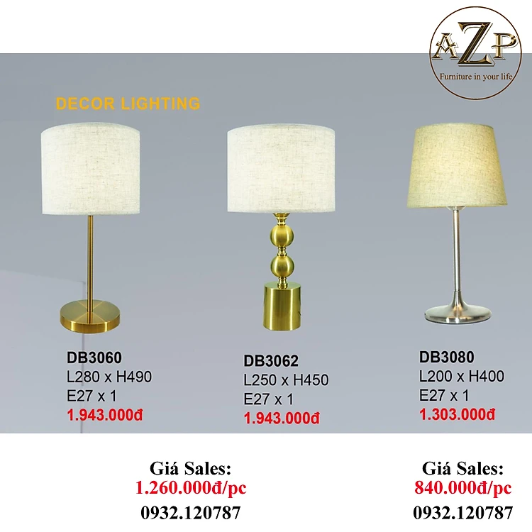 AZP - ĐÈN ĐỨNG / ĐÈN TRANG TRÍ / ĐÈN PHÒNG KHÁCH AZP-DB3060 / DB3062 / DB3080 phong cách đương đại, hàng nhập khẩu AZP