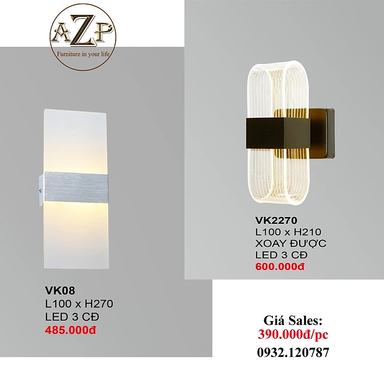 AZP - ĐÈN ỐP VÁCH / ĐÈN TRANG TRÍ / ĐÈN TREO TƯỜNG PHÒNG KHÁCH, PHÒNG NGỦ, NHÀ HÀNG, KHÁCH SẠN AZP-VK phong cách đương đại, hàng nhập khẩu AZP