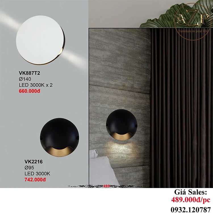 AZP - ĐÈN ỐP VÁCH / ĐÈN TRANG TRÍ / ĐÈN TREO TƯỜNG PHÒNG KHÁCH, PHÒNG NGỦ, NHÀ HÀNG, KHÁCH SẠN AZP-VK887T2 / VK2216 phong cách đương đại, hàng nhập khẩu AZP