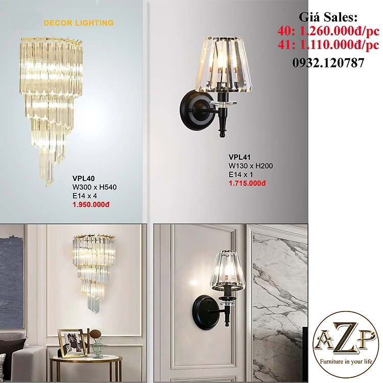 AZP - ĐÈN ỐP VÁCH / ĐÈN TRANG TRÍ / ĐÈN TREO TƯỜNG PHÒNG KHÁCH, PHÒNG NGỦ, NHÀ HÀNG, KHÁCH SẠN AZP-VPL40 / VPL41 phong cách đương đại, hàng nhập khẩu AZP