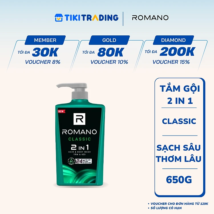 B - Dầu Tắm Gội 2 Trong 1 Dành Cho Nam Romano Classic (650g)