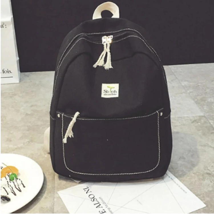 ️️ Ba Lô Canvas Sinh Viên Phong Cách Hàn Quốc 208069-1 (đen)