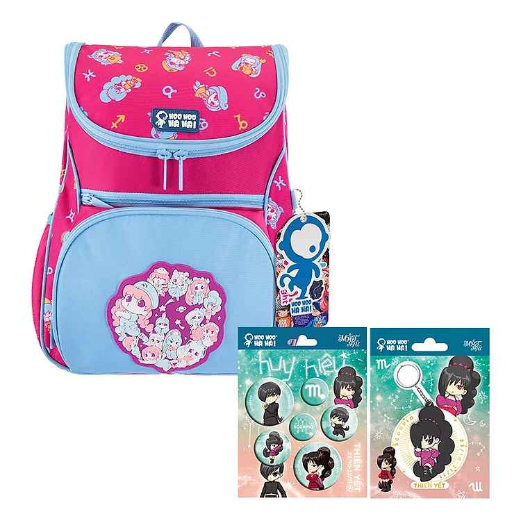 - Ba Lô Lớp Học Mật Ngữ Multi Magic BLME01 (39 x 31 cm) - Hồng + Combo quà tặng 6 huy hiệu cung hoàng đạo và móc khóa Kichan sản xuất từ nhà thiết kế Canada, theo chủ đề bộ truyện tranh Lớp Học Mật Ngữ vui tươi.