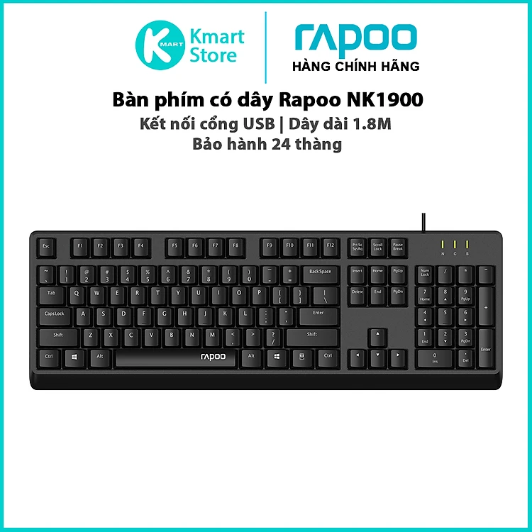Bàn phím có dây Rapoo NK1800 / NK1900 / NK2500 | Kết nối cổng USB | Dây dài 1.8M | Bảo hành 24 tháng - Hàng Chính Hãng