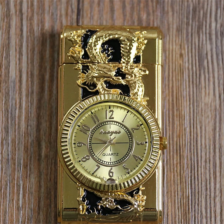 Bật lửa hột quẹt khè đồng hồ 2IN1 hình rồng có đèn Led nhấp nháy - xài ga