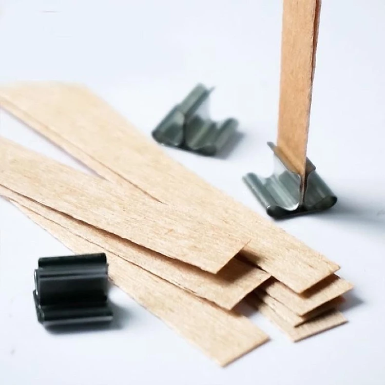 Bấc gỗ + Đế kim loại để cố định Bấc Nến gỗ