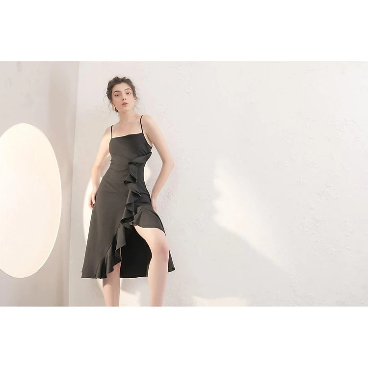 Baciami-Đầm Đen 2 Dây Vạt Xẻ Bèo