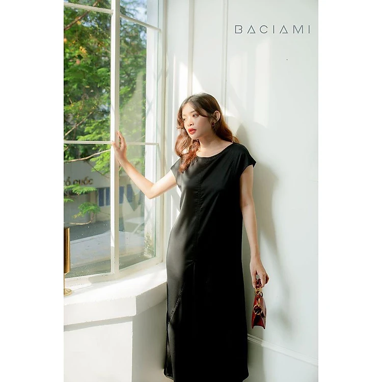 Baciami-Đầm Lụa Cổ Tròn Phôm Rộng