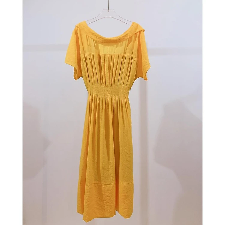 Baciami-Đầm Vàng Cổ Đổ Xếp Ly Eo