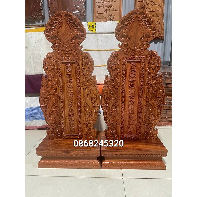 Bài vị thờ cúng gia tiên bằng gỗ hương đá kt 68×30×19cm