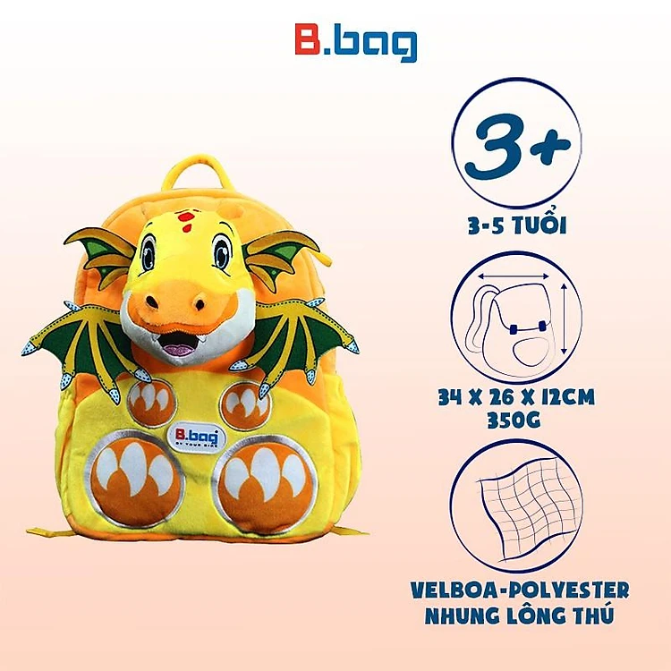Balo B.bag mẫu giáo Cushy-Dragon Vàng cam dành cho bé 3-5 tuổi,trẻ mẫu giáo,đáng yêu,dễ thương B-12-103