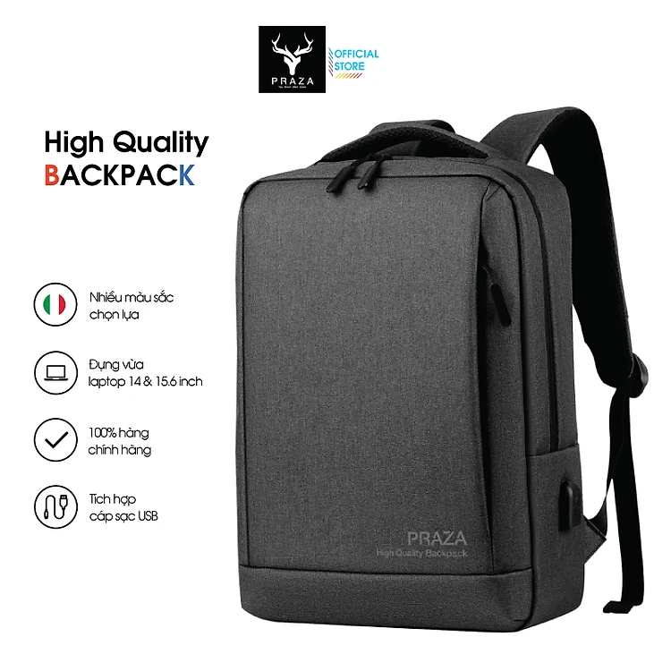 Balo Công Sở Có Cổng Sạc USB Đựng Được Laptop 15.6 inch Và Trượt Nước Cao Cấp PRAZA - BLTK198