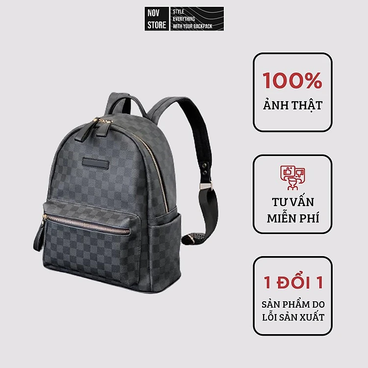 Balo Da Cao Cấp, Chất Da Cứng Form Y Như Hình, Hoạ Tiết CHECKERBOARD, Chống Thấm Nước, Đựng Vừa Laptop 15inch Và A4