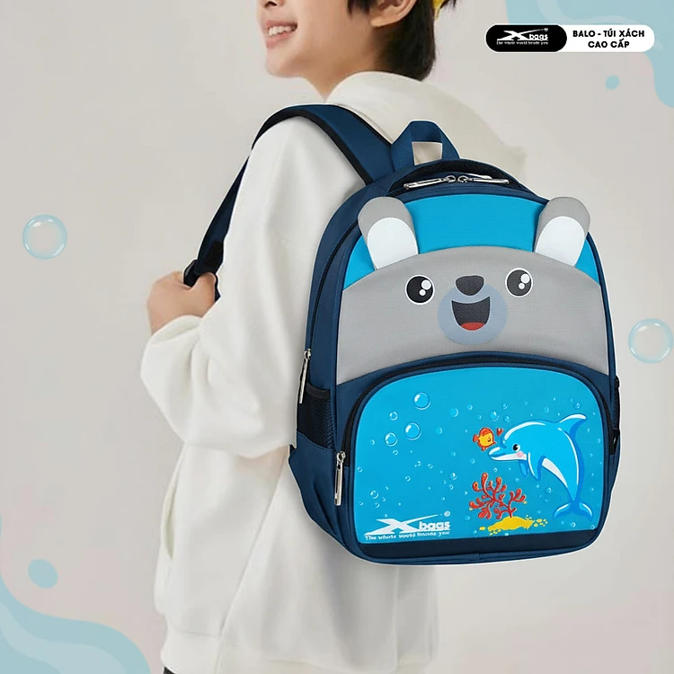 Balo Học Sinh Mầm Non Tiểu Học Cao Cấp Xbags Dolphin XB3020 Màu Xanh Nhỏ Gọn, Họa Tiết Cá Heo Dễ Thương, Nhiều Ngăn Tiện Lợi!