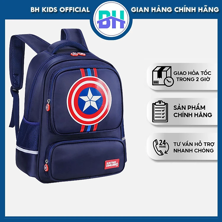 Balo Đội trưởng Mỹ BH Kids chống nước, chống gù cho học sinh cấp 1 - Cặp nhiều ngăn - Phát sáng ban đêm - BHS05