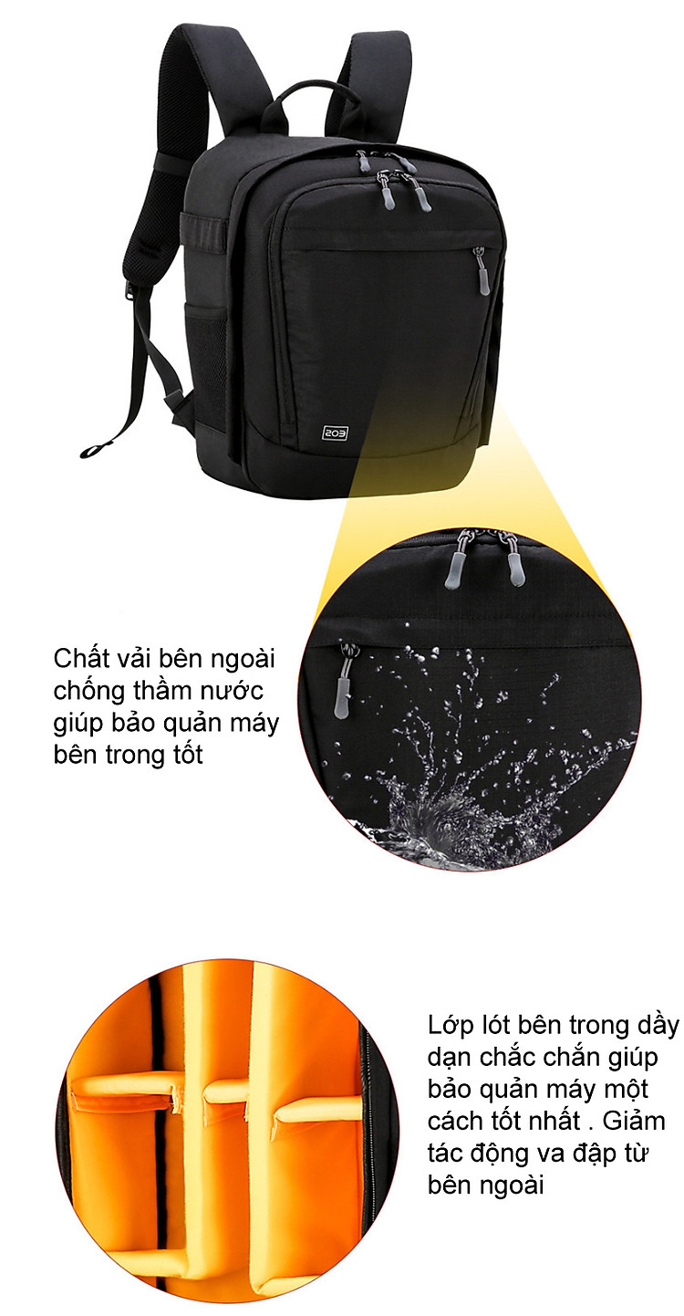 - là một balo nhỏ gọn, thời trang phù hợp cho một chuyến dã ngoại. Nó được làm từ vải chống thấm cao cấp, bên trong là những lớp xốp đệm dày giúp chống sốc cực tốt, chống mọi va đập từ bên ngoài.