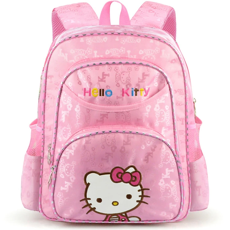- Mặt trước của balo được làm hình mặt chú mèo hello kitty ngộ nghĩnh. Toàn bộ chất liệu tạo lên chiếc balo cũng đc in mờ hình mèo Hello Kitty óng ánh đẹp đến từng chi tiết nhỏ.