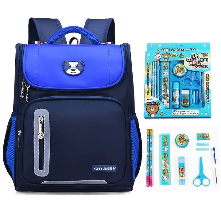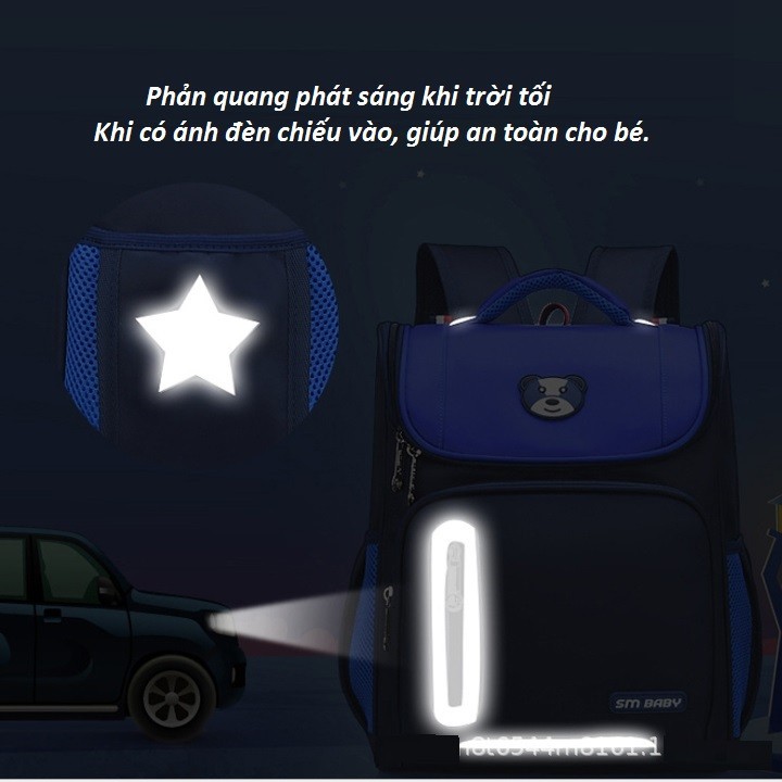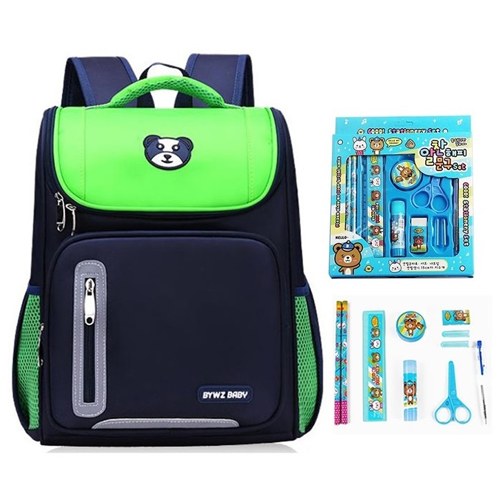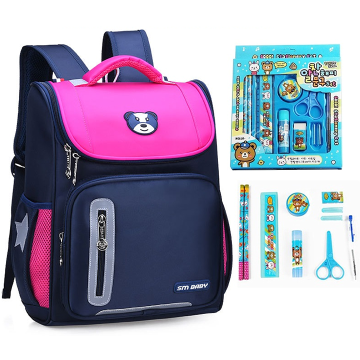Thông tin chi tiết: Balo học sinh cấp 1 chống gù, phản quang-kèm set bút tẩy 7 món cho bé