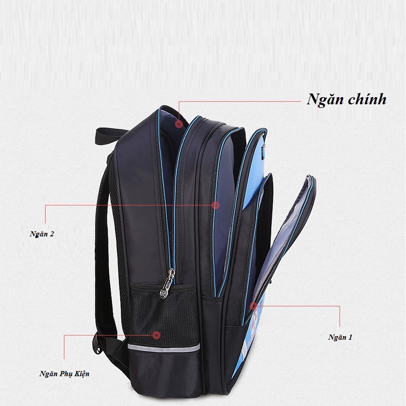 - Thiết kế : phong cách châu âu . nhiều ngăn rộng rãi , ngăn chính , ngăn phụ , ngăn chưa đồ tiện lợi bên sườn cho học sinh