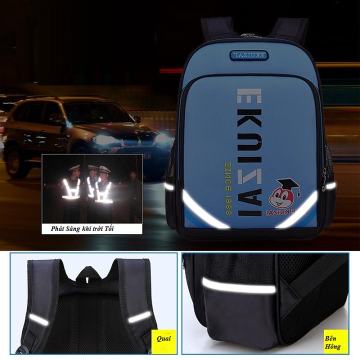 Balo Học Sinh Chống Gù, Chống Thấm Nước, Phản Quang khi trời tối, là một trong những lựa chọn lý tưởng dành cho các mẹ khi có con tiểu học hay trung học bởi thiết kế cùng những tính năng nổi bật. Balo có trọng lượng siêu nhẹ đạt chuẩn quốc tế, cùng đệm lưng bằng lưới và nhiều lớp mút, giảm thiểu tình trạng đau nhức, giúp bé thoải mái khi mang.