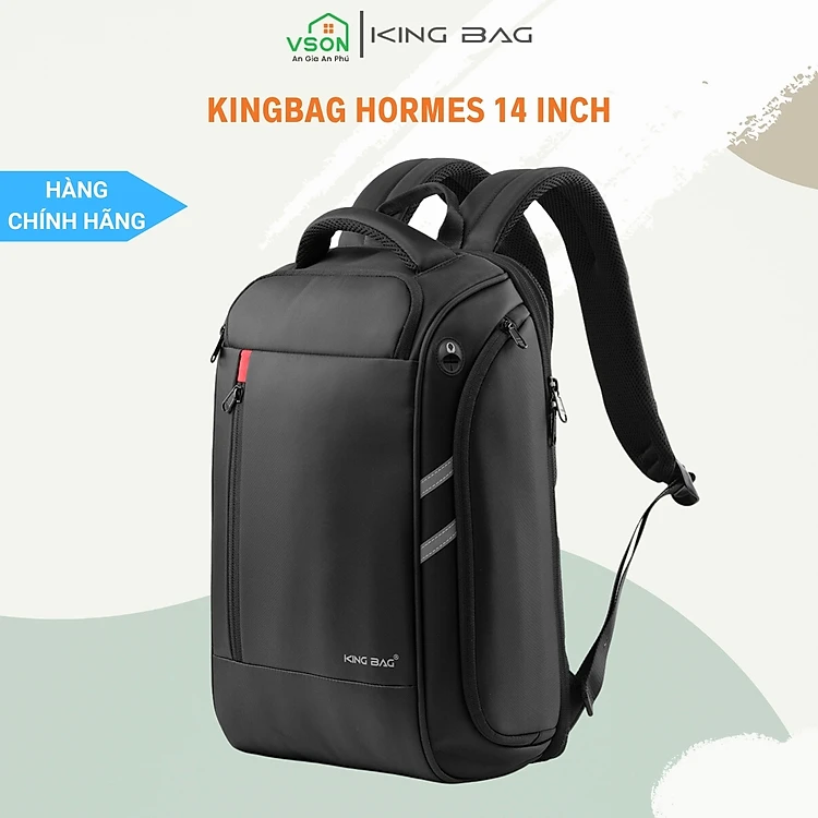 Balo laptop 15” KINGBAG HORMES thời trang, nhiều ngăn rộng rãi, ngăn lót cách nhiệt, jack cắm tai nghe, màu đen- Hàng chính hãng