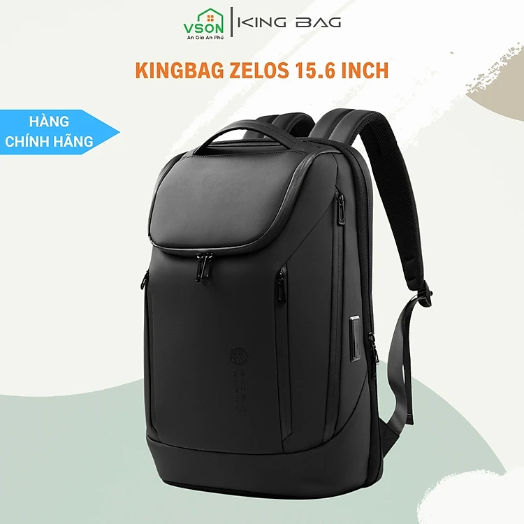 Balo laptop 15” KINGBAG ZELOS thời trang, tích hợp cổng USB đa dụng, vải trượt nước, màu đen - Hàng chính hãng