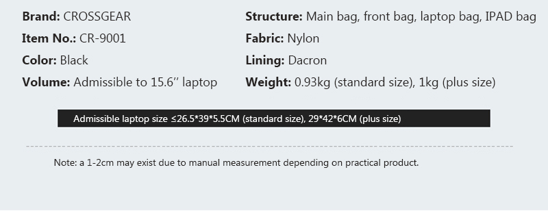 - Balo Laptop Chống Trộm CROSS GEAR CR-9004 có thiết kế trẻ trung và hiện đại thuận tiện để cất giữ những vật dụng cần thiết khi mang theo đi du lịch, chơi thể thao hay đi học.