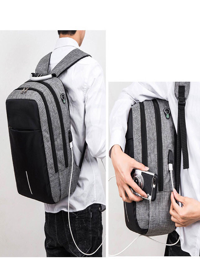 • Balo có dây USB bên trong, bạn có thể dễ dàng để điện thoại trong túi quần mà vẫn có sạc pin. Tính năng này rất thuận tiện cho những người phải di chuyển nhiều trên đường và sử dụng điện thoại thường xuyên.