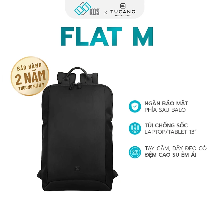 Balo laptop Tucano Flat 13 inch, thương hiệu Ý, bảo hành 2 năm