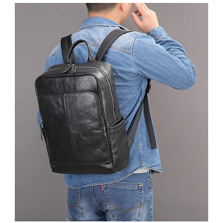 Balo nam da bò thật Ba lô sinh viên BHM9196 vừa laptop 14inch
