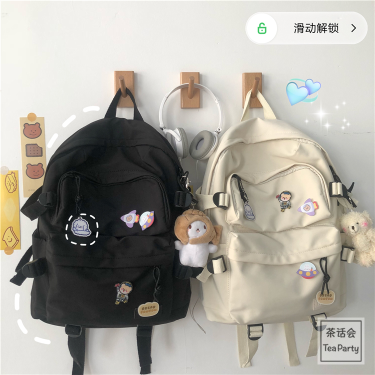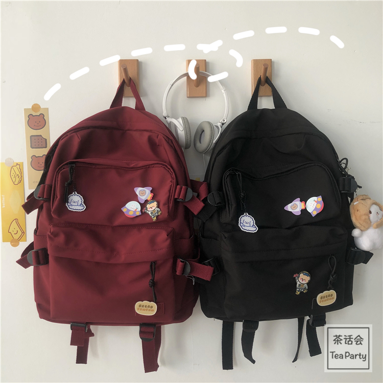 balo nữ hàn quốc, balo đi học basic B136 balo trơn 2 ngăn lớn trước