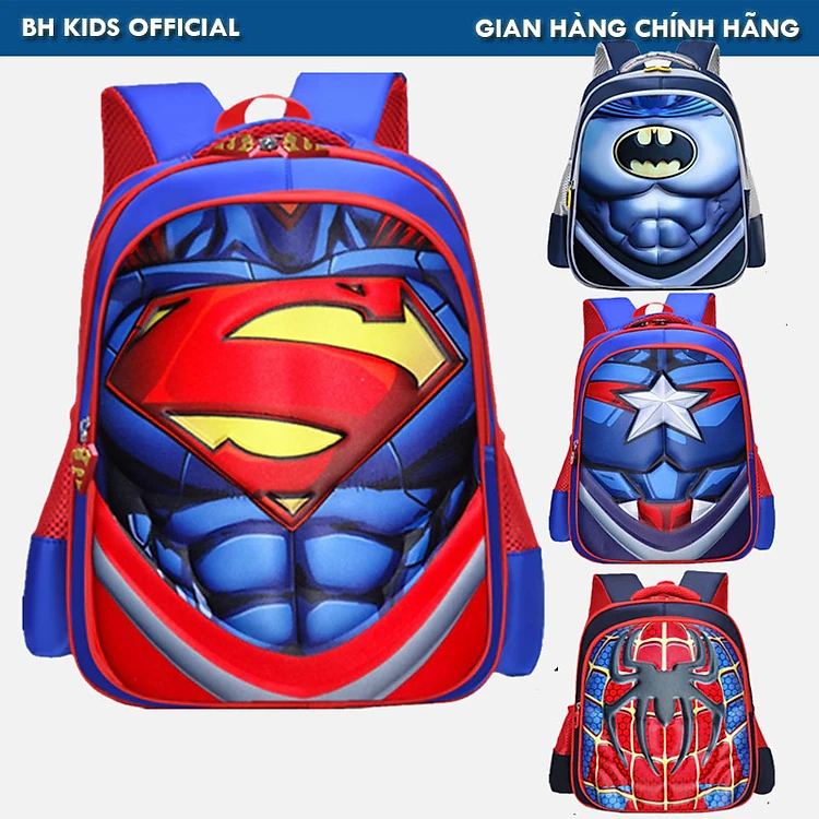 Balo siêu nhân chống thấm nước cho bé trai, học sinh tiểu học, hoạt hình 3D nổi ngộ nghĩnh, dễ thương CH120 - BH Kids