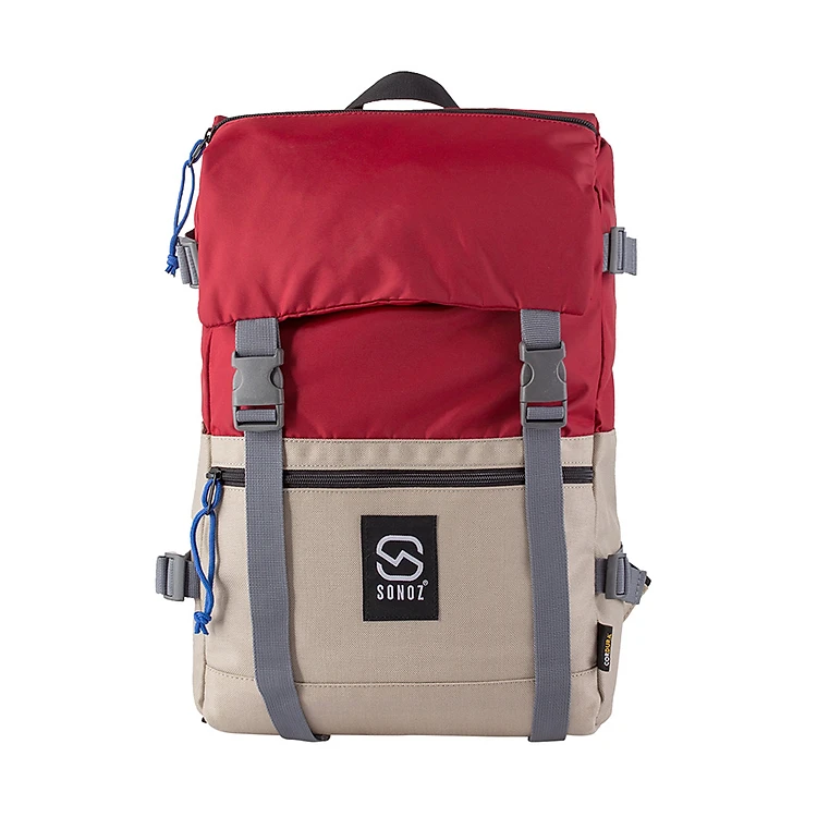 Balo Sonoz Le Duo BLANCROUGE1815 - Đỏ Kem có thiết kế trẻ trung cùng tông màu đỏ phối kem vừa nổi bật vừa tinh tế sẽ làm bạn hài lòng khi sử dụng. Mặt trước có túi phụ ở trên kết hợp cùng dây khoá nhựa tiện lợi khi sử dụng. Balo có kích thước 45 x 12 x 28 cm rộng rãi, có ngăn đựng laptop 15” tiện sử dụng khi đi học, đi làm.