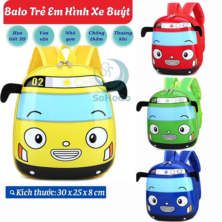 Balo Trẻ Em Hình Xe Buýt Hoạt Hình -Balo Chống Thấm Cho Bé