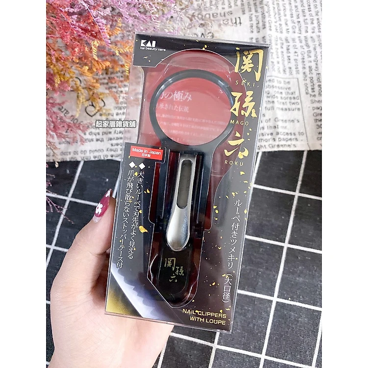 Bấm móng tay cao cấp Kai, với ống kính lúp cỡ lớn cho độ phóng đại lên đến 2,5 lần có thể nhìn thấy rõ các cạnh cắt và các đầu ngón tay - nội địa Nhật Bản