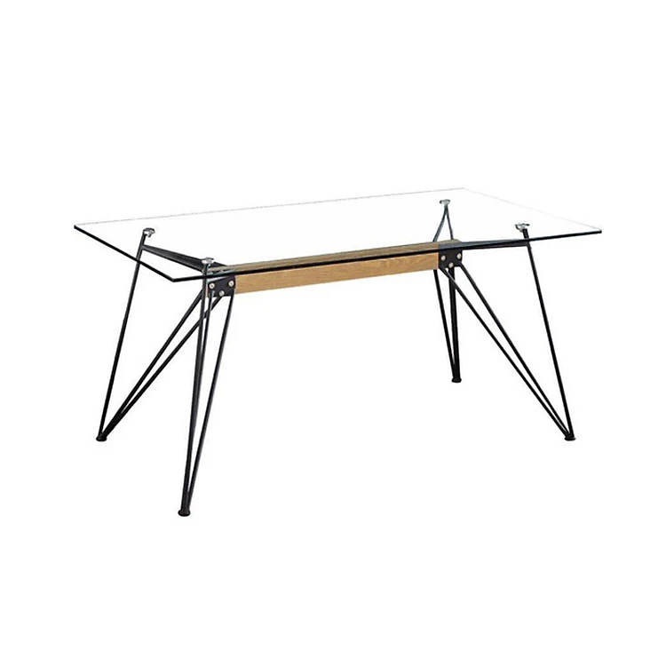 Bàn ăn bàn tiếp khách Indus 1m4 mặt kính cường lực trong suốt dày 10ly TE INDUS-14G chân gỗ cao cấp hiện đại CAPTA