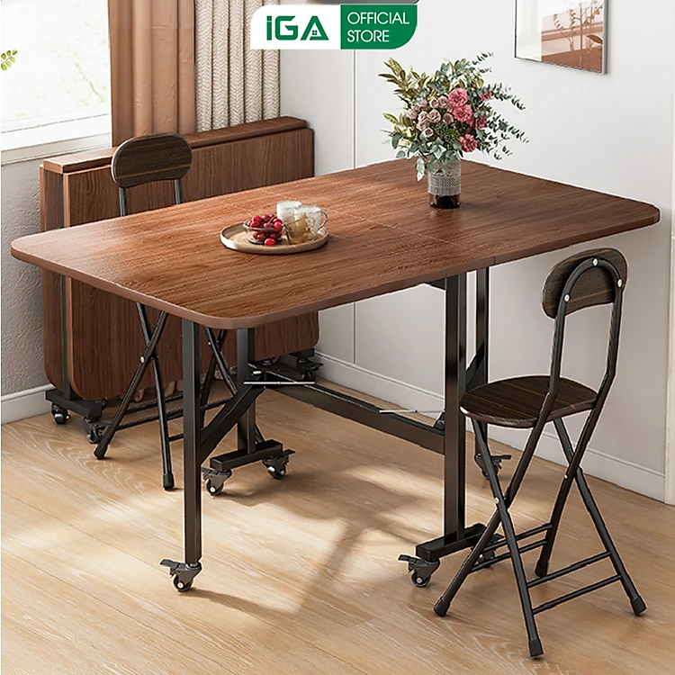 Bàn ăn gấp gọn thông minh có bánh xe di chuyển, tiết kiệm diện tích thương hiệu IGA - GM107