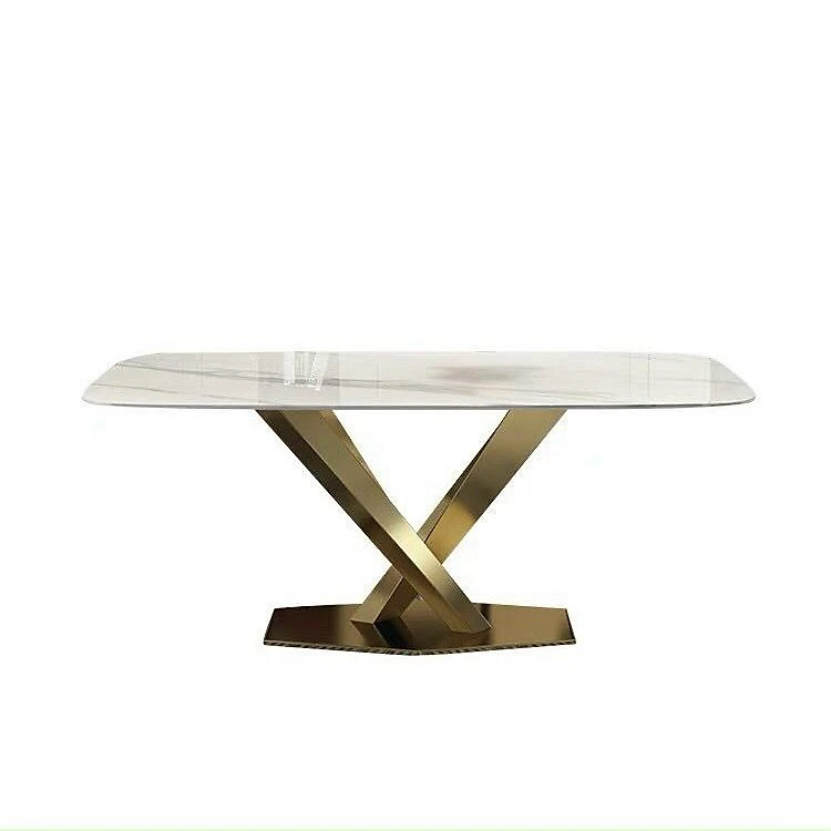 Bàn ăn mặt đá ceramic bóng chân chéo chữ X inox mạ vàng
