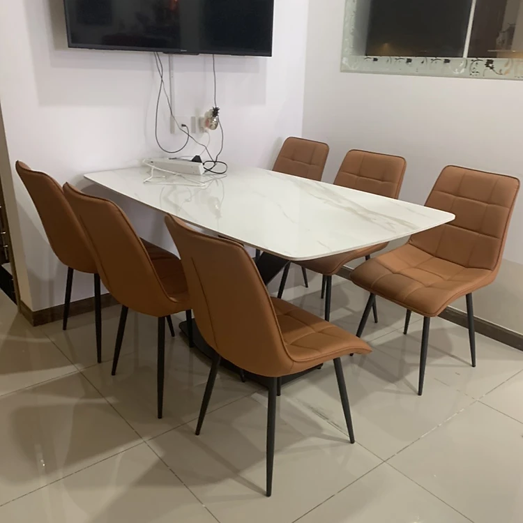 Bàn ăn mặt đá Ceramic bóng kết hợp ghế loft bi