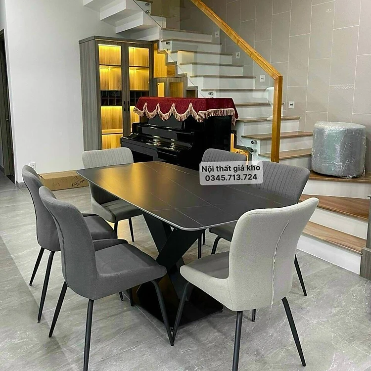 Bàn ăn mặt đá phiến chân chéo chữ X kết hợp ghế Royal, bộ bàn ăn mặt đá 4 ghế 6 ghế 8 ghế